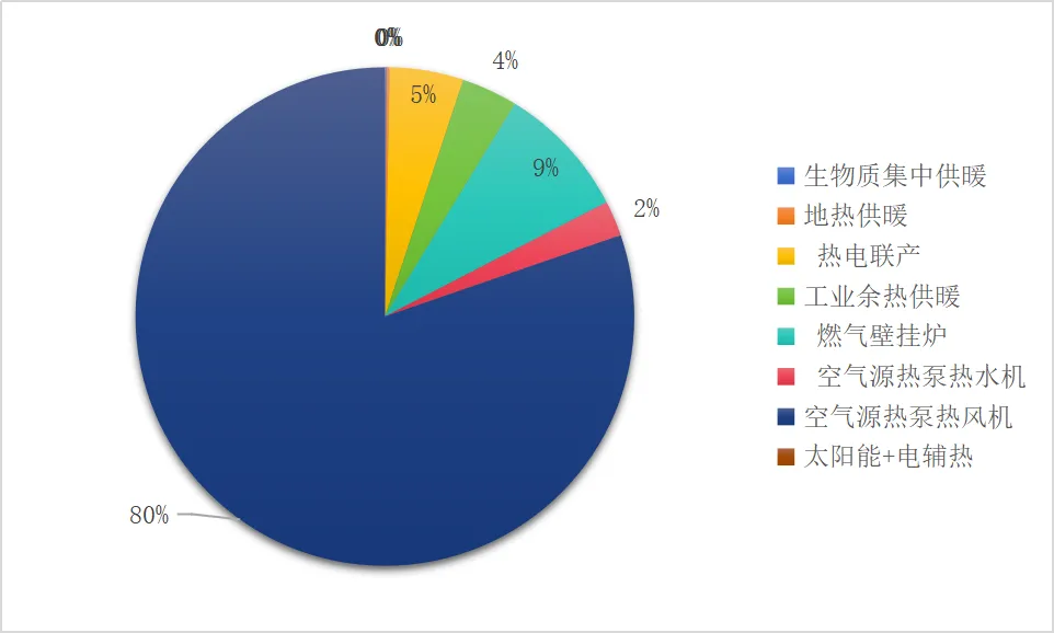 北方地区农村清洁取暖逐步形成了以清洁能源替代为主,以洁净煤和配套环保炉具兜底的发展思路,积极试点示范太阳能、风能等可再生供热,因地制宜探索“可再生能源+”的多能互补模式。从区域分布来看,京津冀及周边地区以煤改电、煤改气为主。东北地区气候严寒,供暖周期长,供热量占全国需求总量的三分之一,清洁取暖发展基础薄弱,且经济发展相对滞后,农村居民收入相比“2+26”大气污染防治重点区域较低,随着近几年的不断探索推进,东北农村地区逐步形成了以“生物质+”为主的清洁供暖格局。而西北地区的内蒙古、新疆、甘肃、青海等地区光伏资源、风能资源较为丰富,具备较好的常规清洁能源+可再生能源耦合供暖的潜力。