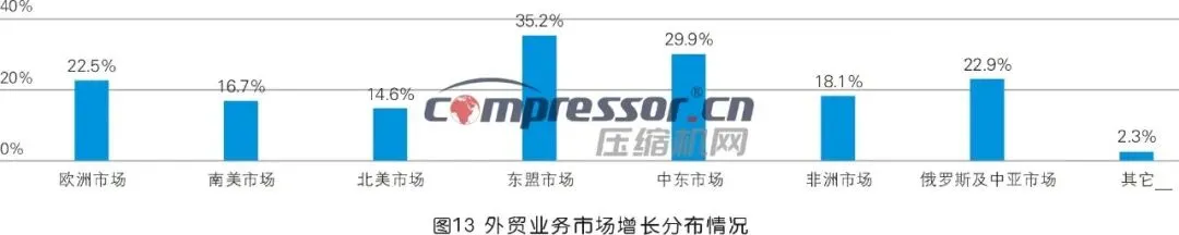对于2025年压缩机行业外贸市场各区域增长情况,35.2%的被调研者认为东盟市场增长最快,位列第一,中东市场次之,俄罗斯及中亚市场位列第三。