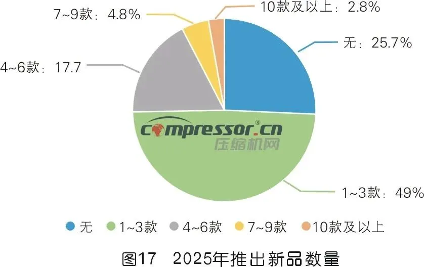 本次调研结果显示,2025年压缩机行业各企业在售产品覆盖11类核心设备,整体呈“通用主导,高端跟进,新兴布局,全场景覆盖”的特征,清晰折射出企业产品策略与行业趋势的深度绑定。