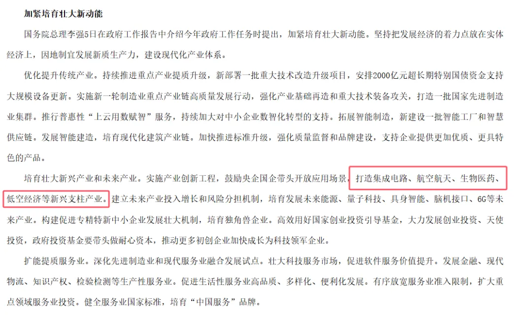 今年全国两会的政府工作报告中明确提出,要“加快培育战略性新兴产业,推动低空经济等新兴支柱产业规模化、高端化发展”。这是低空经济首次被纳入 “新兴支柱产业” 的范畴,也标志着其在 “十五五” 时期的战略地位得到全面提升。