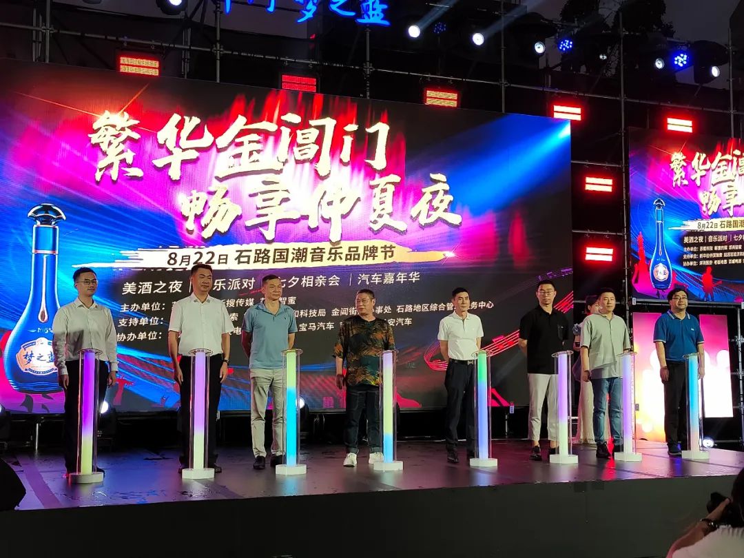 繁华金阊门,畅享仲夏夜。8月22日下午6点,苏州姑苏区石路亚细亚广场“石路国潮音乐品牌节”热闹开幕。相关部门领导支持并出席开幕式。活动以“国潮”“音乐”“品牌”为载体,由新搜传媒和苏鲲科技服务有限公司举办,由洋河酒业、老板电器、百威啤酒和吉利集团等世界500强及中国500强企业赞助,体现“品牌”特色。