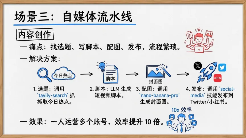✅ 场景3:自媒体流水线(效率提升10倍)