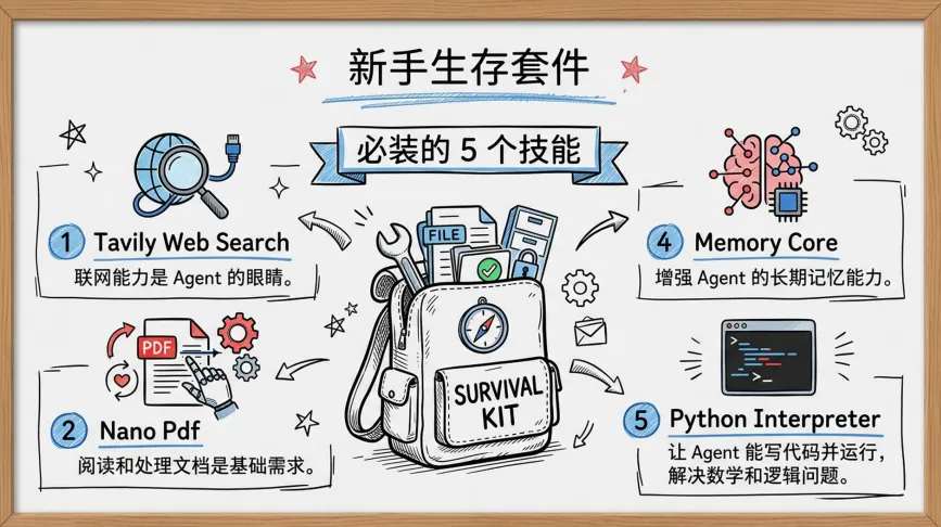? 新手生存五件套:联网搜索、PDF读写、长期记忆、Python运行