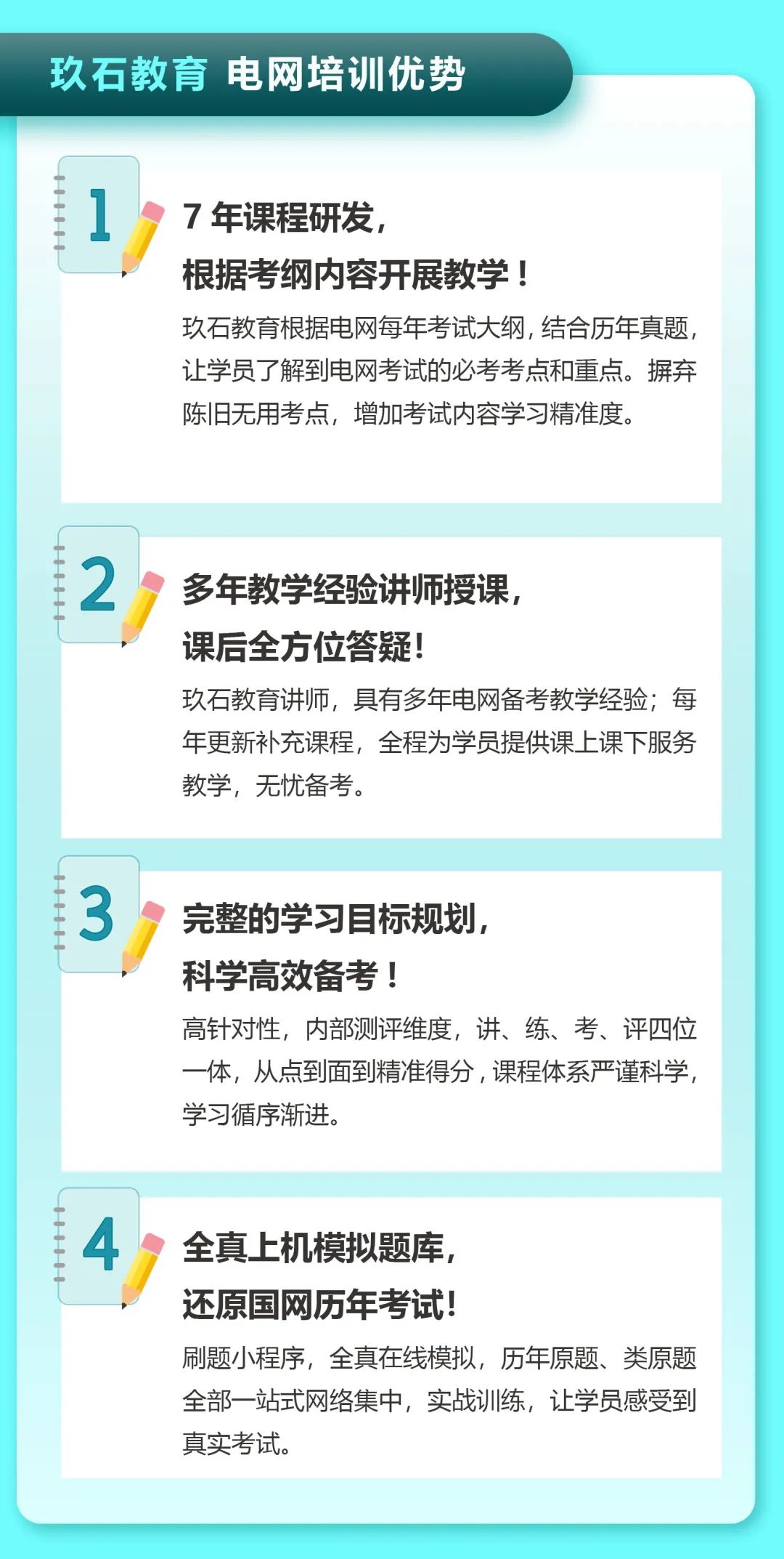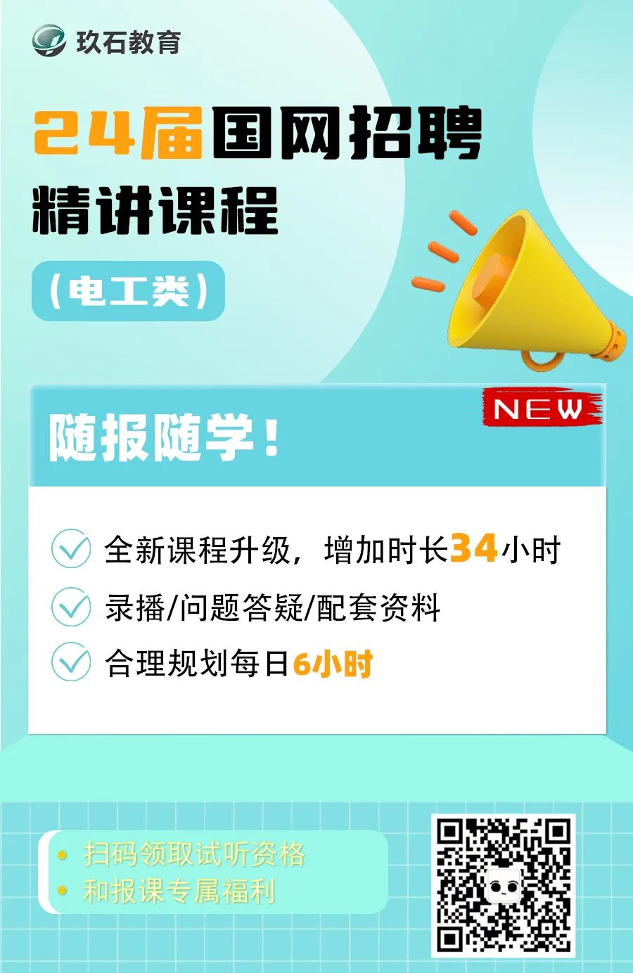 针对24届考生,玖石教育将电工类精讲班进行了全面优化,调整了课程设置,增加了课程时长,提供了更多的学习资源,为考生圆梦国网保驾护航!