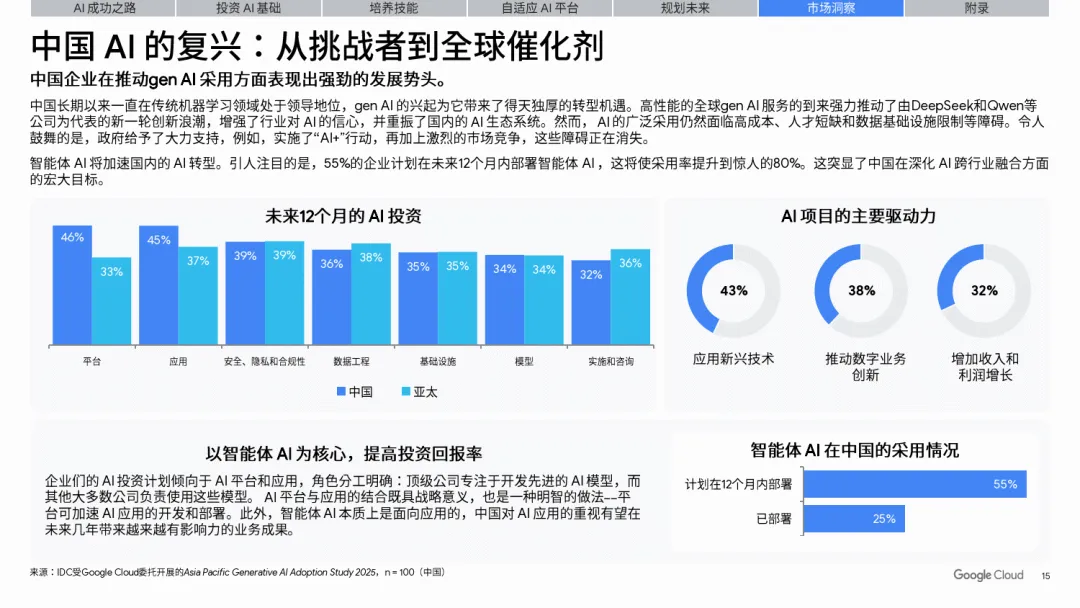 白皮书由谷歌云联合 IDC 基于 2025 年亚太地区 950 家企业的生成式 AI 调研打造,聚焦智能体 AI 对企业增长的变革价值,剖析其落地现状、核心挑战与实施路径,同时针对中国市场给出专属洞察,指出智能体 AI 已成为企业数字化转型进阶、打造竞争优势的关键抓手,规模化落地将开启企业增长新蓝海。————