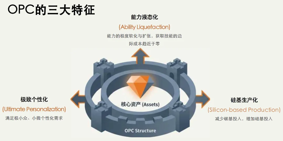 核心生产力:人工智能一人公司(AI-OPC)以人工智能技术(AI 智能体、大模型等)为核心生产力;普通一人公司的核心生产力是人力与资本;传统 AI 企业则依托AI 技术团队与核心算法作为核心生产力。