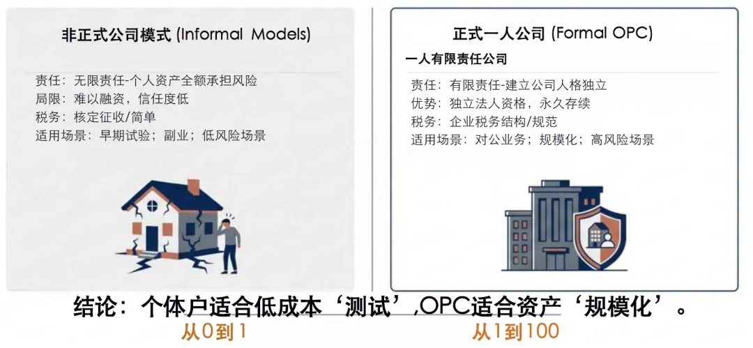 第三,发展潜力受限,升级难度大。AI-OPC的一人治理结构,难以吸引高端AI技术人才、运营人才(无股权激励、团队氛围弱),且缺乏股权融资、增资扩股的灵活空间,难以支撑核心技术研发与业务规模化扩张;同时,单一创始人的认知与能力有限,易陷入“技术路径依赖”,难以应对AI技术迭代与跨领域拓展的需求,多数AI-OPC长期停留在“小作坊”层面,难以成长为规模化AI企业。