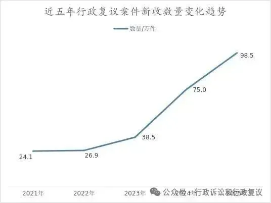 2025年全国新收行政复议案件98.5万件。层级分布呈现清晰的倒金字塔压力结构: