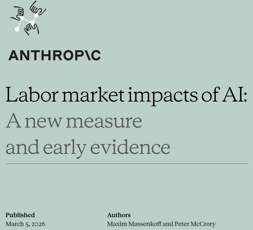 3月5日,Anthropic发布了一份题为《AI对劳动力市场的影响:一种新衡量标准与早期证据》的研究报告。