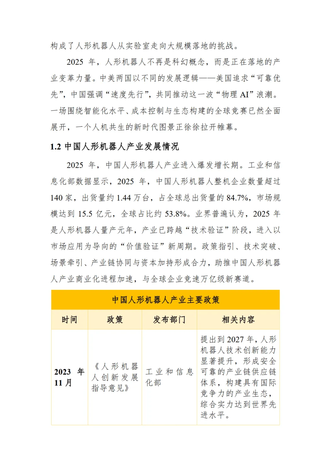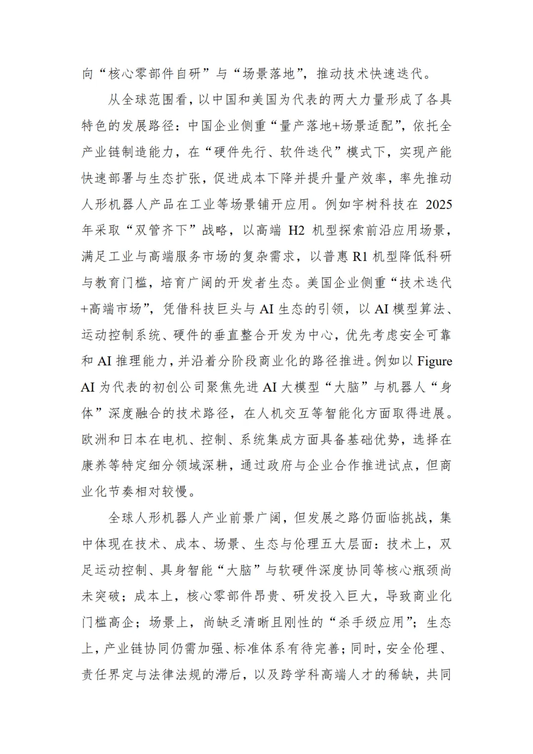 2025 年人形机器人产业迎来量产元年与场景商业化新阶段,全球迈入智能化发展期,中美形成差异化发展路径,中国凭借全产业链优势成为产业发展核心力量,行业在技术、量产、场景落地等方面实现突破,同时仍面临多重挑战,未来发展潜力巨大。