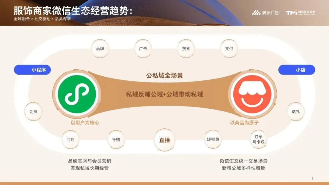 在流量红利趋稳、行业竞争加剧的当下,服饰品牌如何在存量市场中挖掘增量,如何在效率至上中回归品牌价值,成为所有经营者共同思考的命题。微信生态,凭借其独有的社交基因与全域车接能力,正通过"视频号+小店+私域"的深度融合,为朋饭饰行业给出了一份全新的答案。