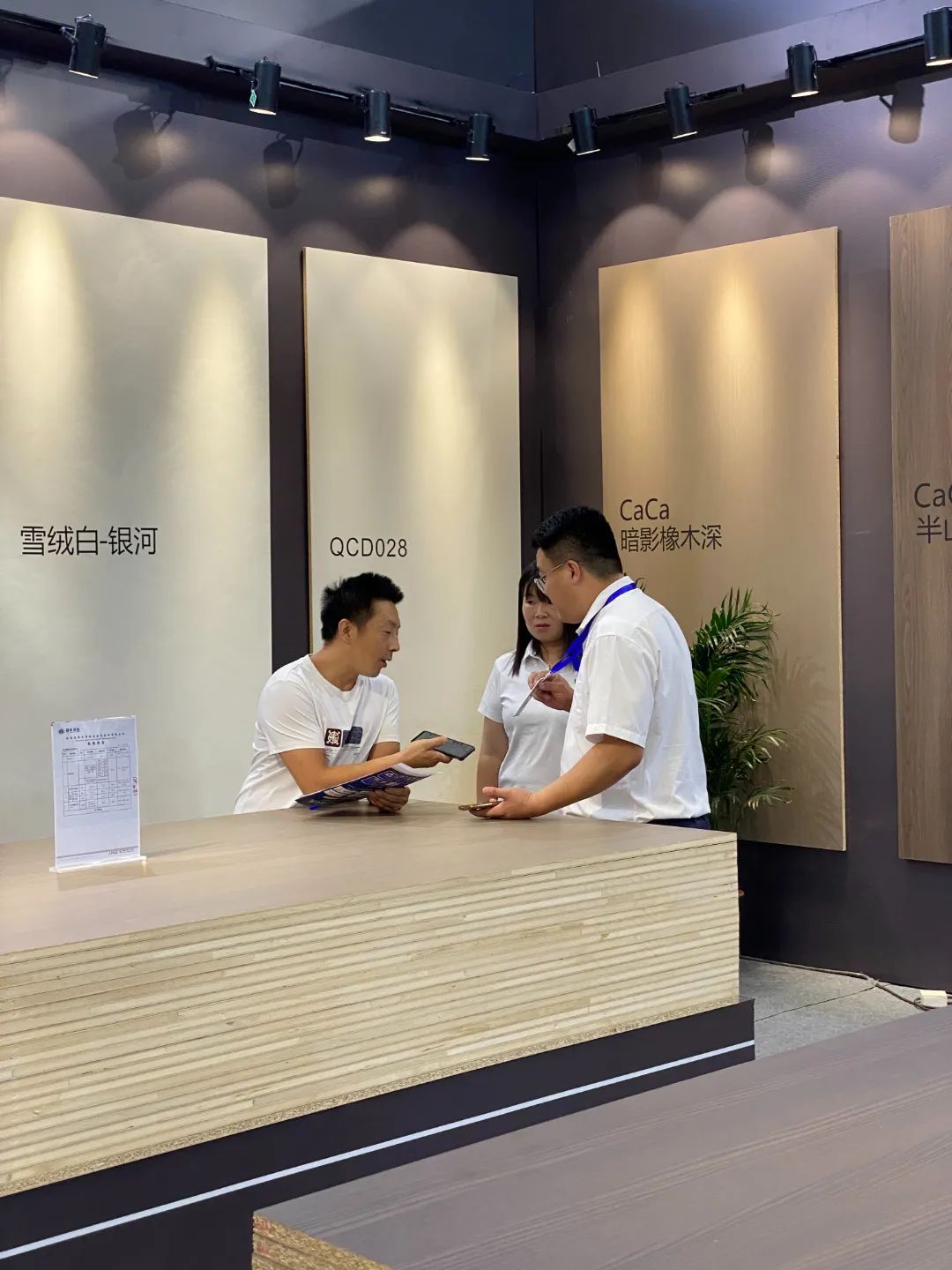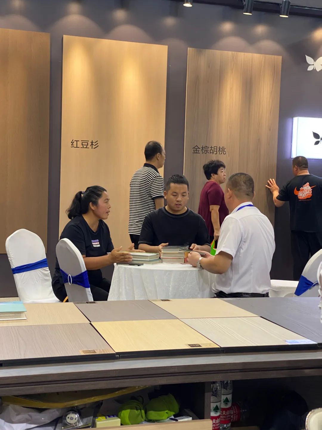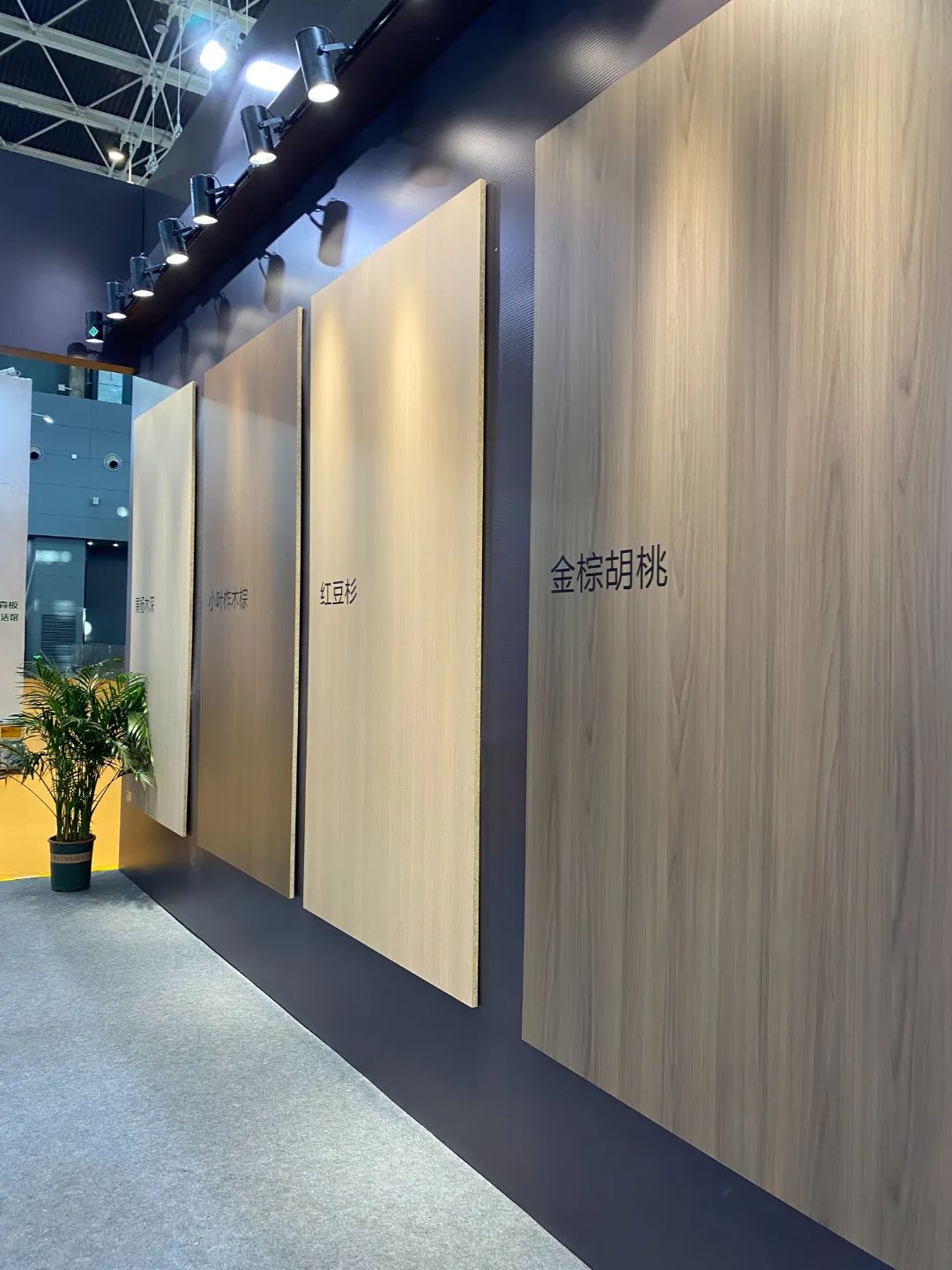 展会正在如火如荼的进行着,七彩蝶拥有上百种种纹理同色的生态板、颗粒板,门墙柜一体化的配套体系,4*8尺、4*9尺,各种规格尺寸的板材。产品种类齐全,现货一张起发!如有需要,欢迎咨询!