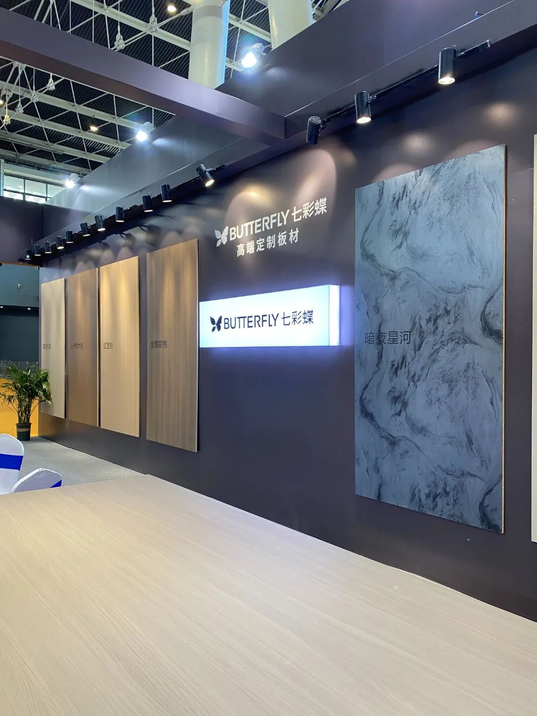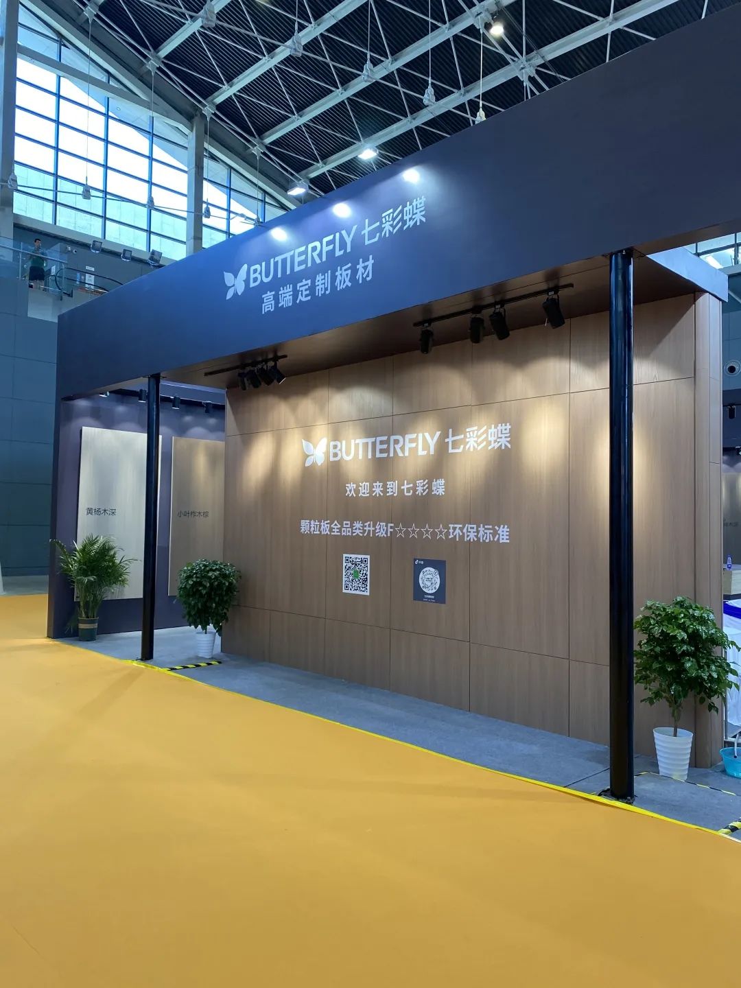 七彩蝶用心做好每一张板材,打造具有竞争力的品牌。此次展会,我们携带了全新产品,板材环保等级全面提升,F4星级、ENF级产品更为优质,颗粒板基材优化,装修无刺鼻气味。