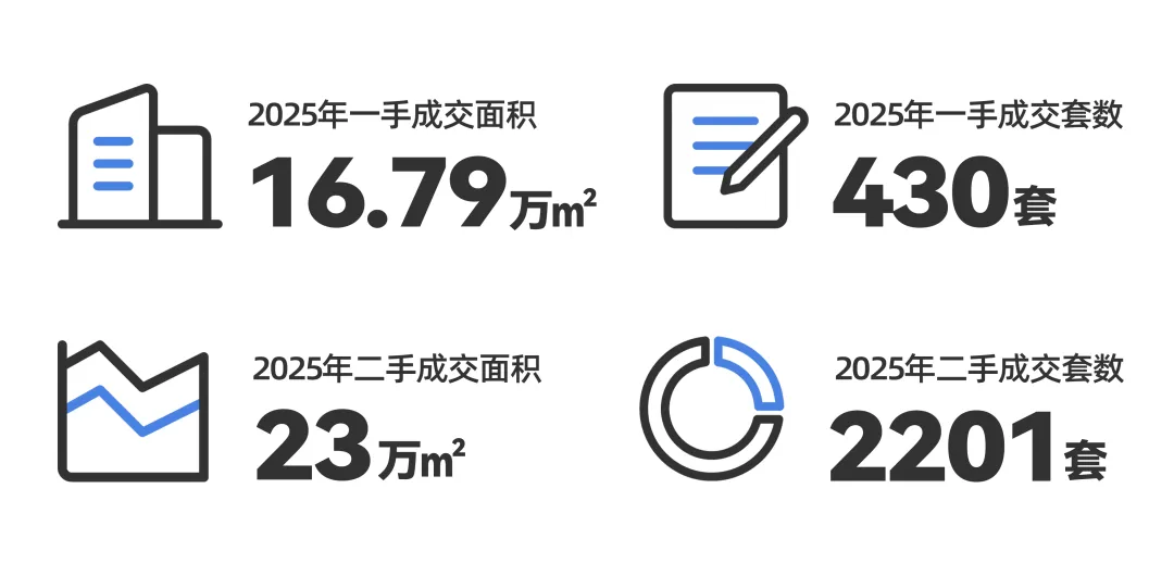 2025年全市一手办公预售成交430套,同比下跌41.4%;成交面积16.79万㎡,同比上升117.9%;成交均价47581元/ ㎡, 同比下跌7.8%。