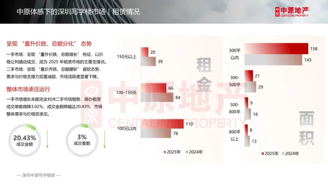 1.2025年深圳商办写字楼市场呈现 “供应放量、需求分化、租金回调、投资活跃” 的格局。