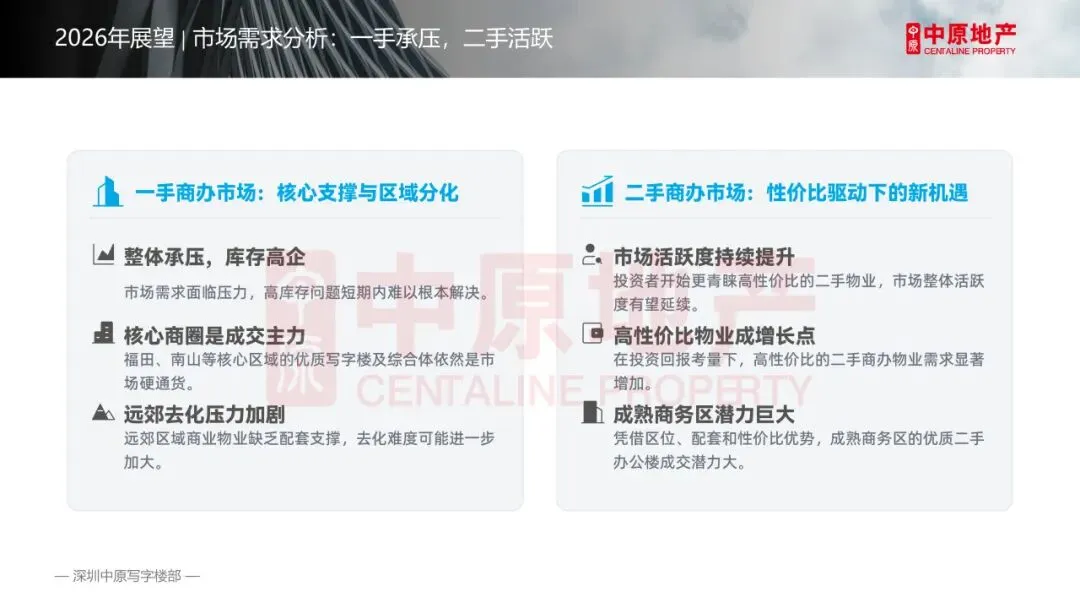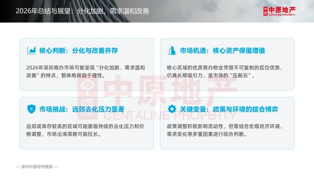 2025年深圳商办写字楼市场在 “供应放量、政策引导” 下呈现结构性分化,核心区优质资产与科创、跨境赛道需求形成正向循环,而非核心区资产面临 “去化 + 租金” 双重压力。