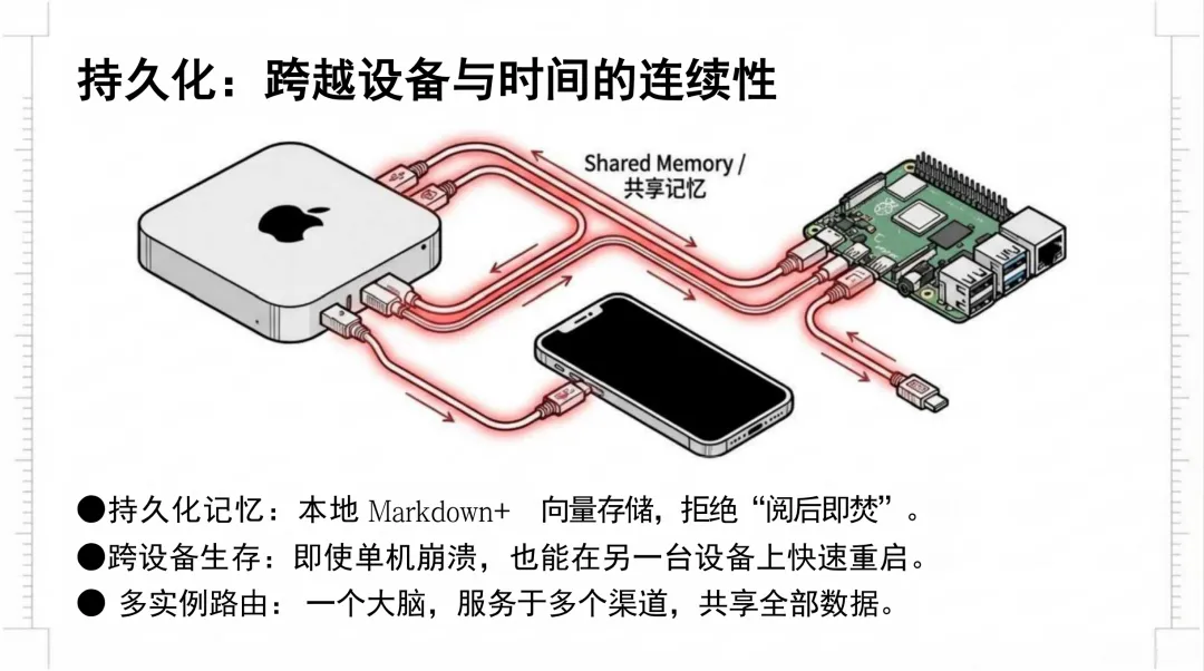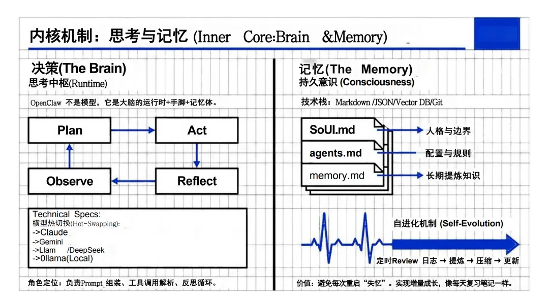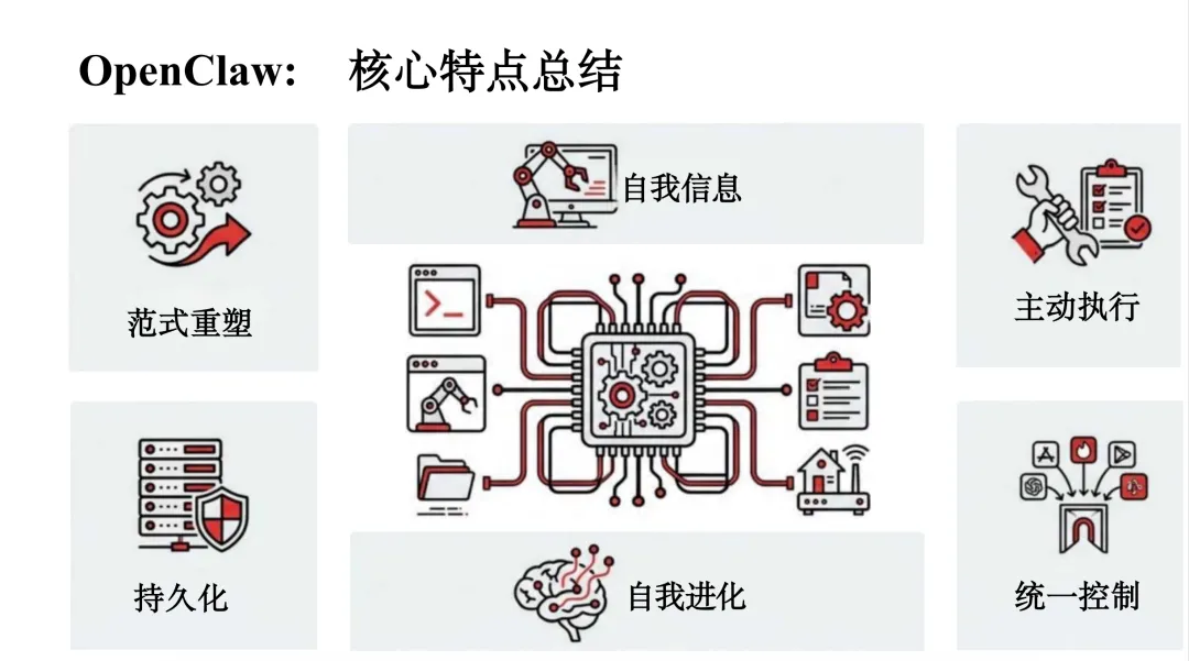 1.厘清了OpenClaw“本地优先、单用户、自托管”的核心定位与“隐私至上,安全沙箱,用户完全掌控”的核心理念,梳理了其从个人周末实验项目到成熟架构的演进路径,拆解了其“大脑-交互-执行-记忆”的技术架构与持久化、主动执行、自我进化等核心特征。