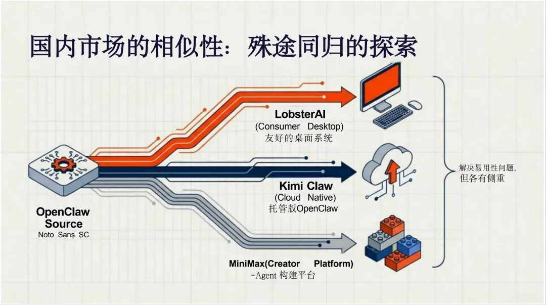2.分析了国内Claw类生态的市场格局,对比了LobsterAI、Kimi Claw等本土化产品的定位、优势与局限性。