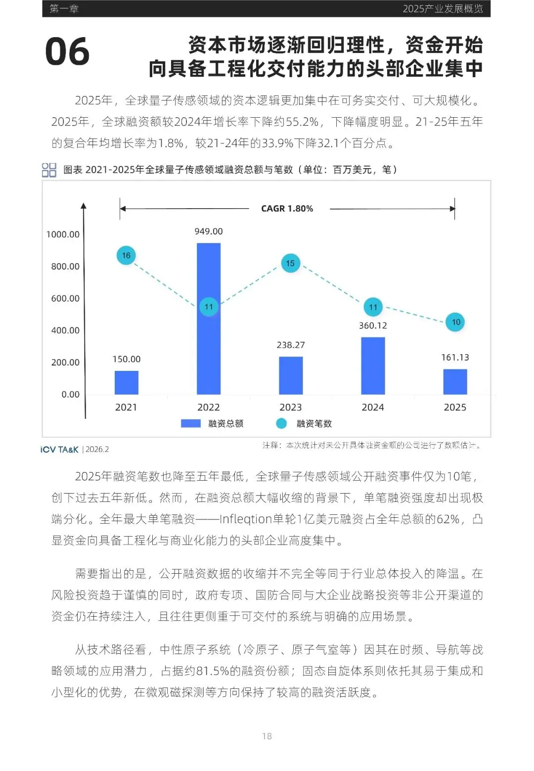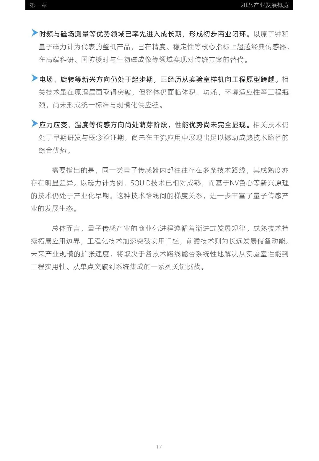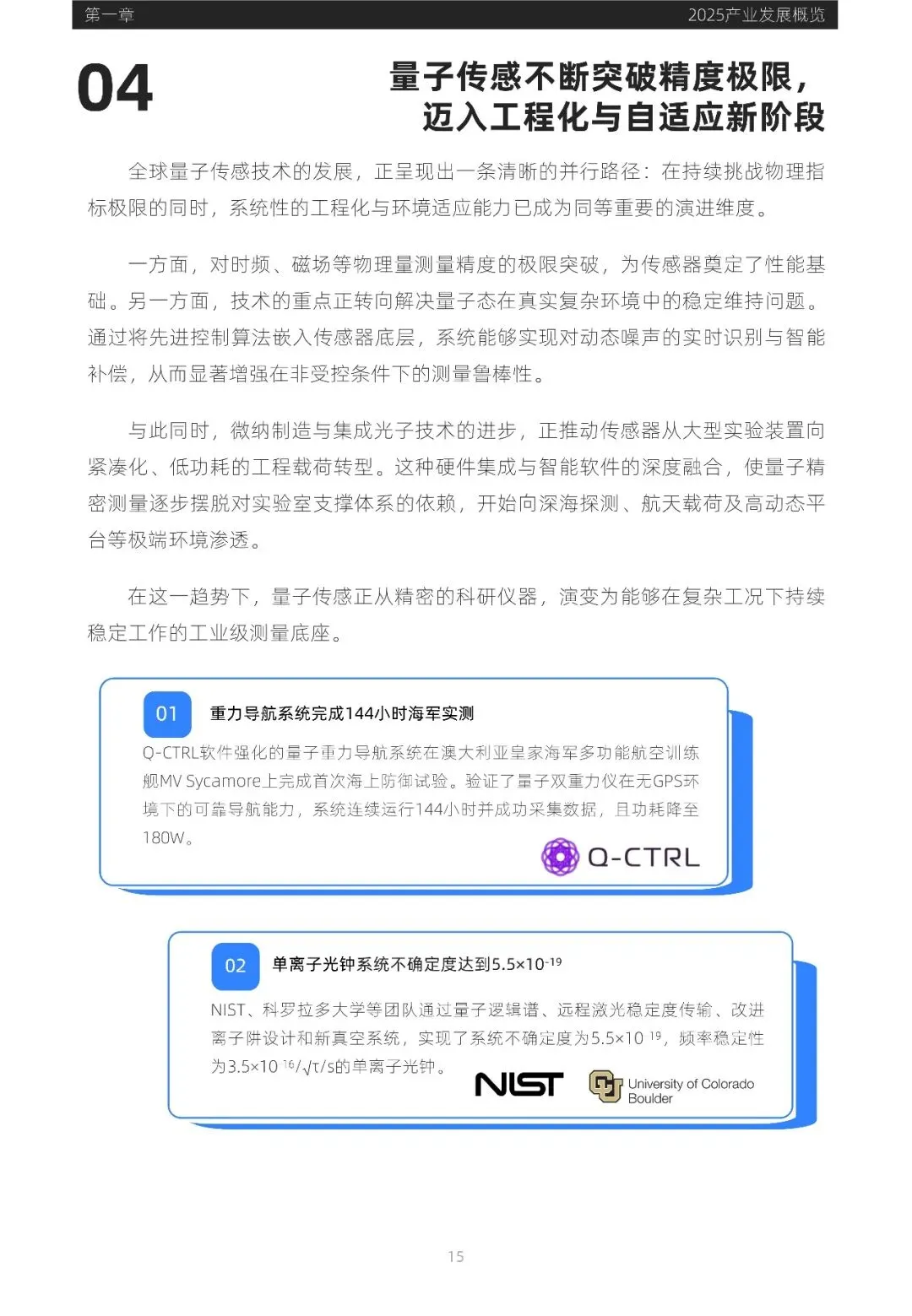 量子传感正经历从实验室到实际应用的转型,技术逐步走向成熟与工程化。全球主要经济体加速布局量子科技战略,政策支持与技术进步共同推动产业快速发展。时频与磁场测量领域率先进入产业化阶段,重力测量在资源勘探等领域展现潜力。资本市场趋于理性,资金向具备工程化交付能力的头部企业集中。