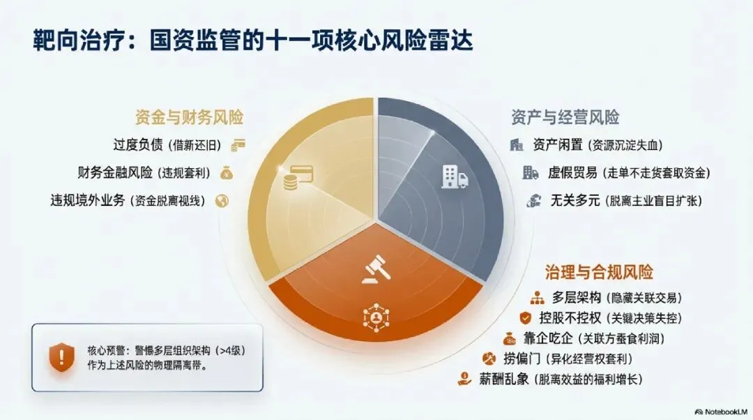 穿透式监管不仅是技术的堆叠,更是对国资运营中各类顽疾的靶向治疗。某软件企业通过对审计、巡视中发现的高频风险点进行归纳,总结出十一项重点监管问题。这些问题的解决是穿透式监管的核心任务 。3.1 核心问题风险剖析与监管逻辑