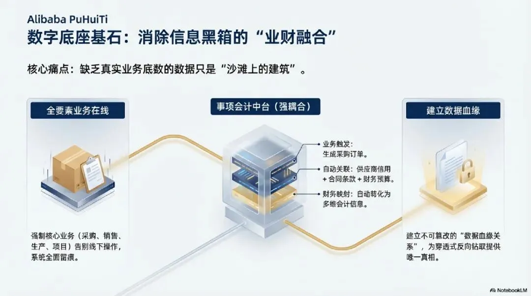 穿透式监管的效果取决于底层的数字化能力。缺乏真实业务底数的数据就像沙滩上的建筑 。6.1 夯实业财基础:实现全要素业务在线
