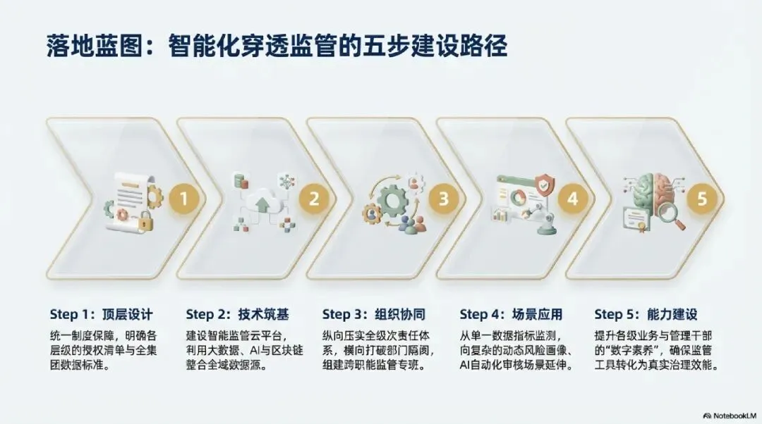 基于治理后的干净数据,监管者需搭建分层级的指标体系。战略层关注收入、ROE、增加值等KPI;经营层关注人力产出、资产回报;业务运营层则细化到采购成本、设备故障率等细节。这种纵向贯通的指标脉络,使监管能从宏观的战略偏差迅速穿透到微观的业务症结 。第七章 穿透式监管落地路径与模式策略