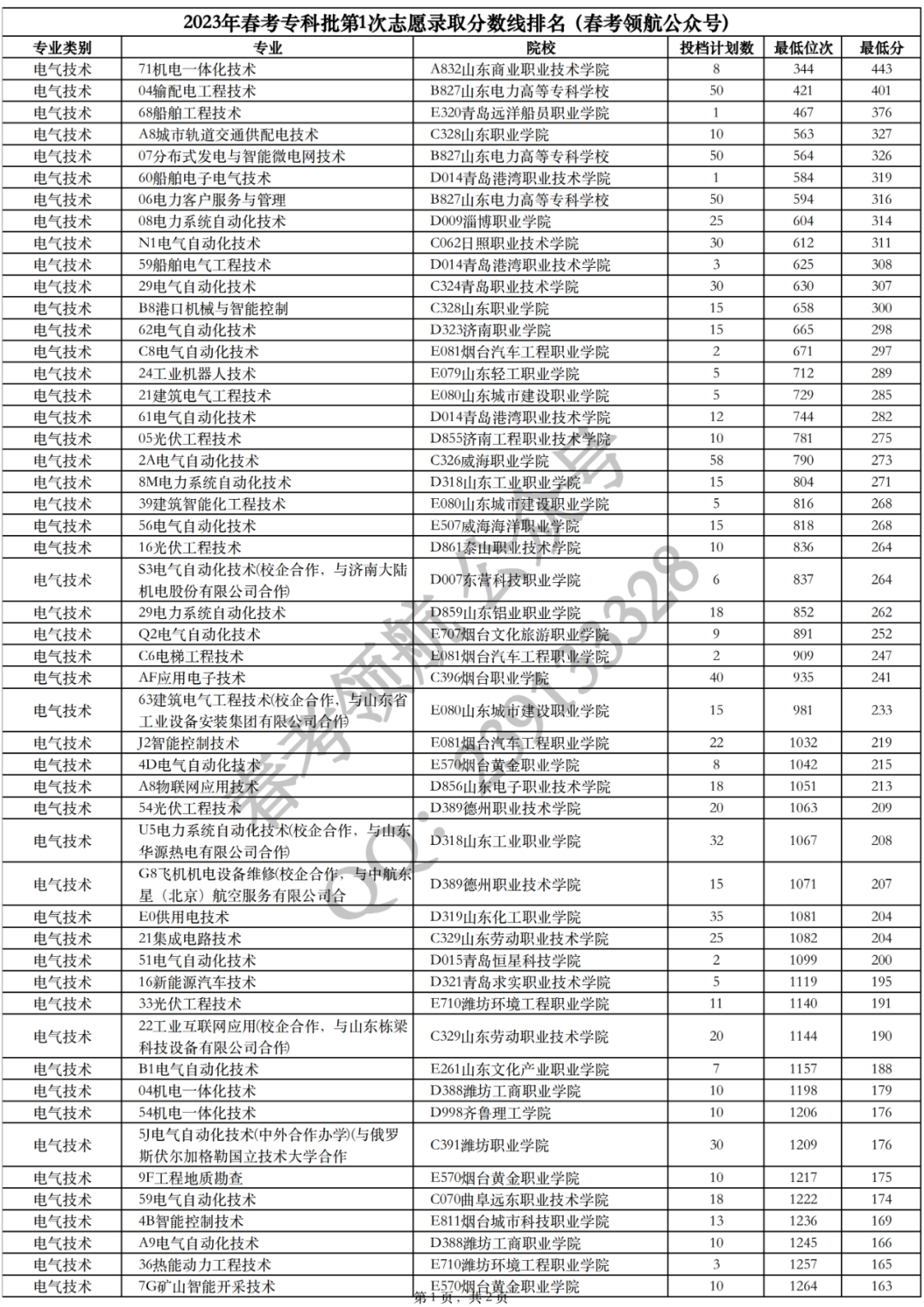 机电、电子技术、电气技术|2023年春考录取分数排名