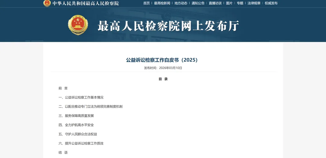 公众号:最高人民检察院最高检发布《公益诉讼检察工作白皮书(2025)》
