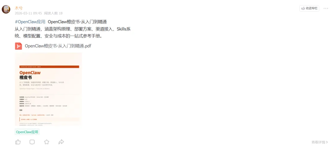 报告:《OpenClaw 橙皮书 —— 从入门到精通》
