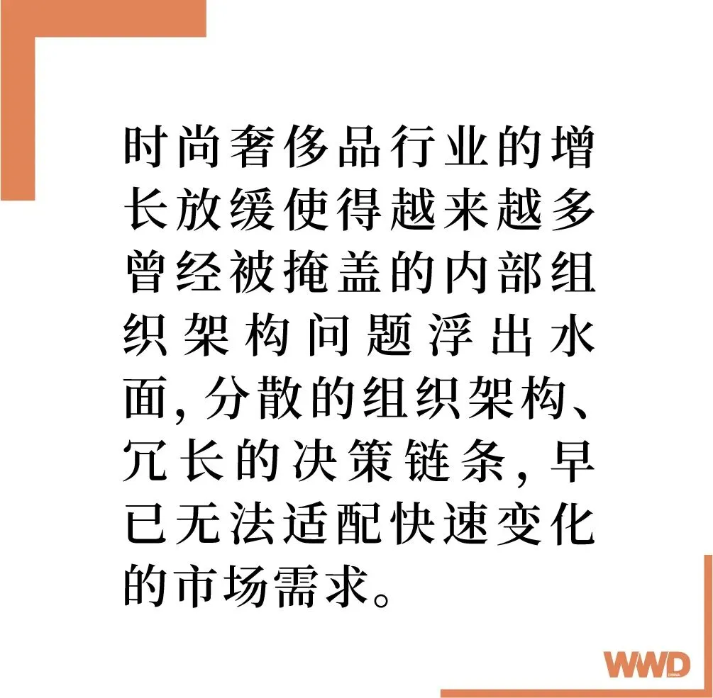 时尚奢侈品行业的增长放缓使得越来越多曾经被掩盖的内部组织架构问题浮出水面,分散的组织架构、冗长的决策链条,早已无法适配快速变化的市场需求,品牌间资源内耗、供应链效率低下、客户体验割裂等问题,更成为阻碍企业发展的障碍。