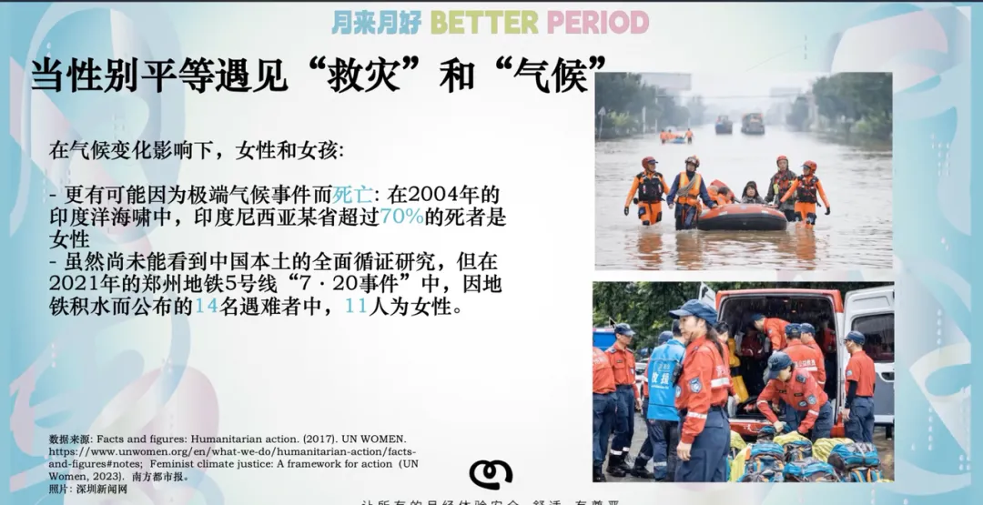 “当我们去看待气候变化对于我们整个社会的影响时,最不能忽略的,往往就是性别不平等这样一个结构性的因素。它其实是很多不平等因素的根基,它与阶级、教育背景、可获取资源息息相关。”