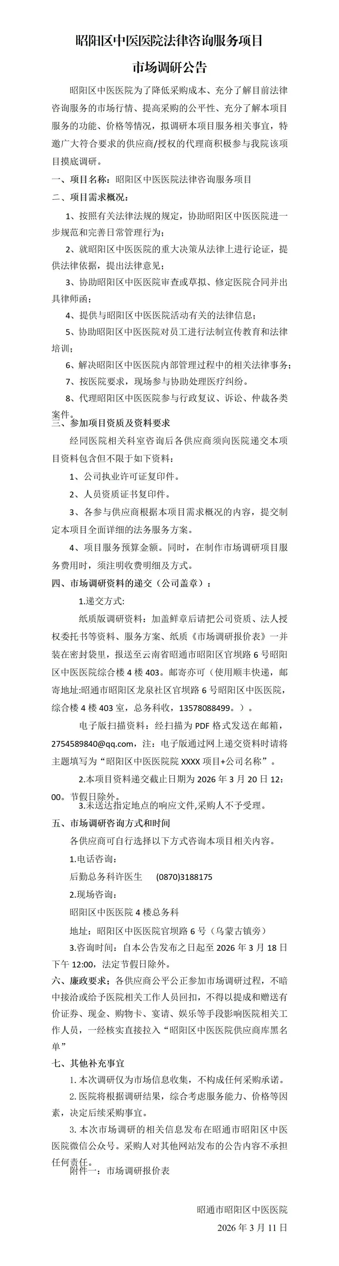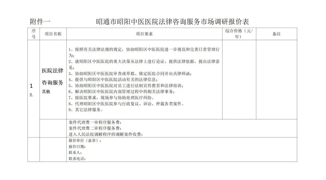 昭阳区中医医院法律咨询服务项目市场调研公告