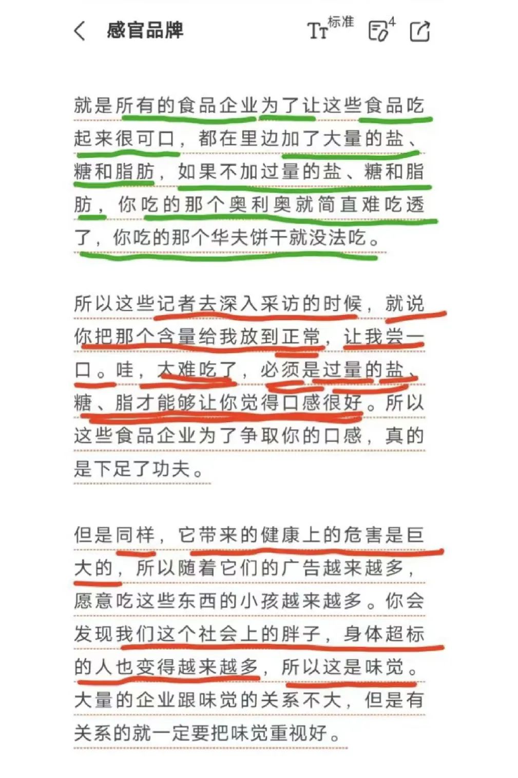另一方面,从消费角度来讲,我们应该掌握基础的营养知识。了解配料表的信息,少添加的更安全。援引世卫组织的数据,“如果我们在营养膳食上投入1块钱,那么在治疗上就会省出8块5毛钱。”樊登老师讲的《感官品牌》一书里也提到了对我们的身体健康带来的巨大危害的是——加工类食品,这样一句: