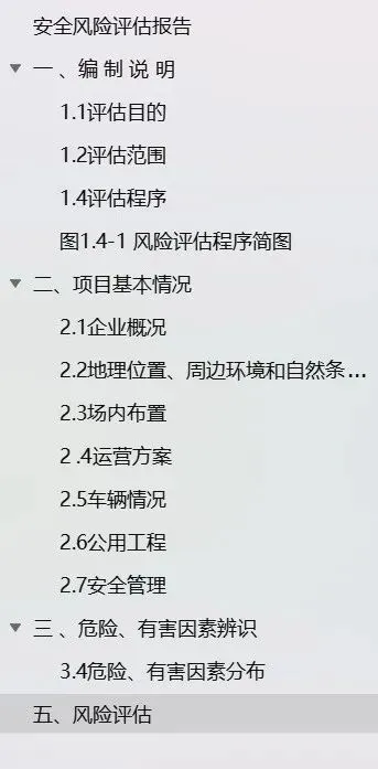 五、某企业停车场安评示例目录