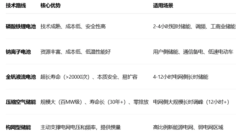 三、 技术路线演进:从“锂电独大”到“多元互补”