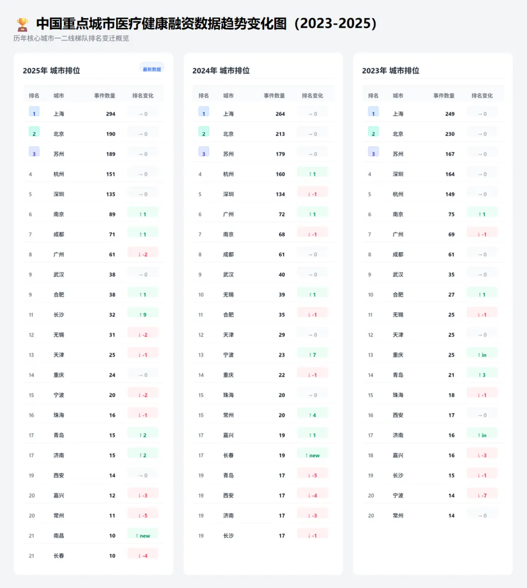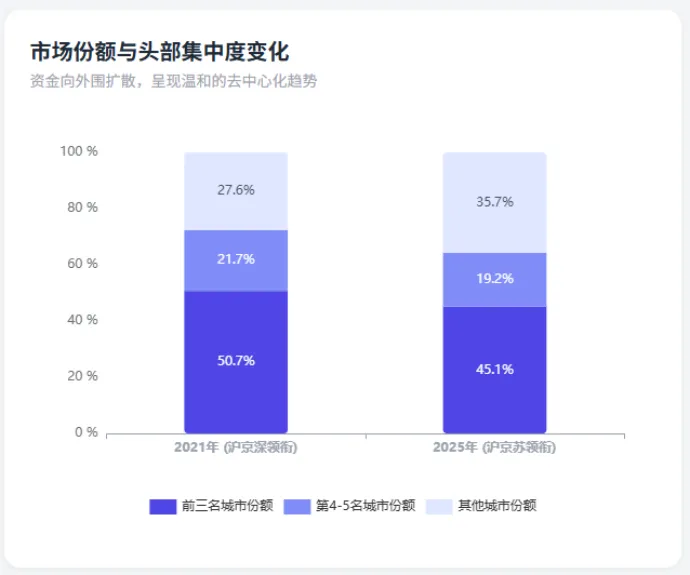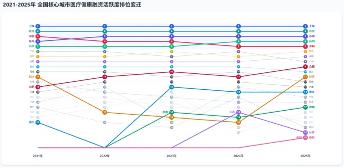 从上述梯队变化中,我们可以清晰地看到一个核心趋势:医疗健康资本的集中度正在下降,而长三角城市群正在实现对传统一线城市的全面超越。