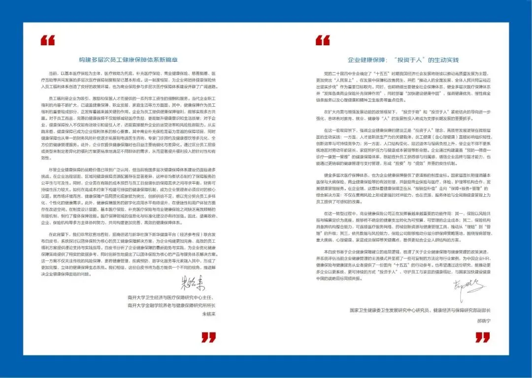 从“基础保障”到“战略资产”,从“标准化福利”到“个性化服务”,从“事后赔付”到“全周期管理”,中国企业健康保障的发展脉络愈发清晰。在健康中国战略的引领下,在技术创新与市场需求的双重驱动下,企业健康保障不再是简单的“成本支出”,而是对“人”的核心投资,是企业实现高质量发展、增强组织韧性的关键抓手。