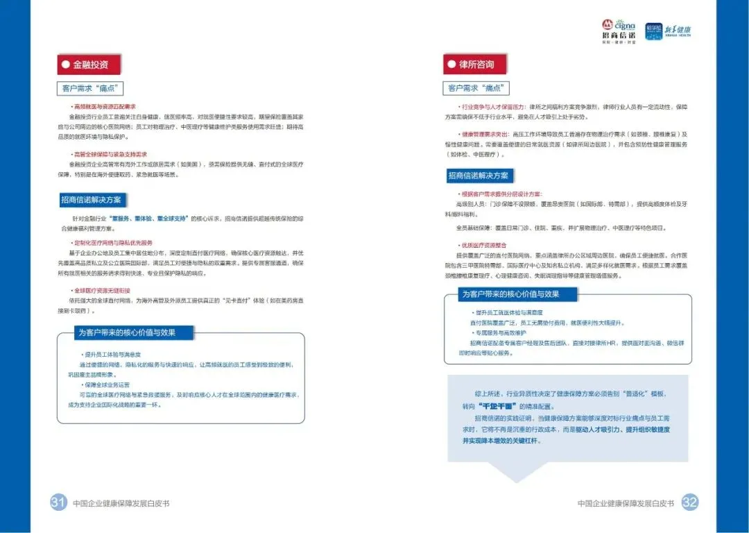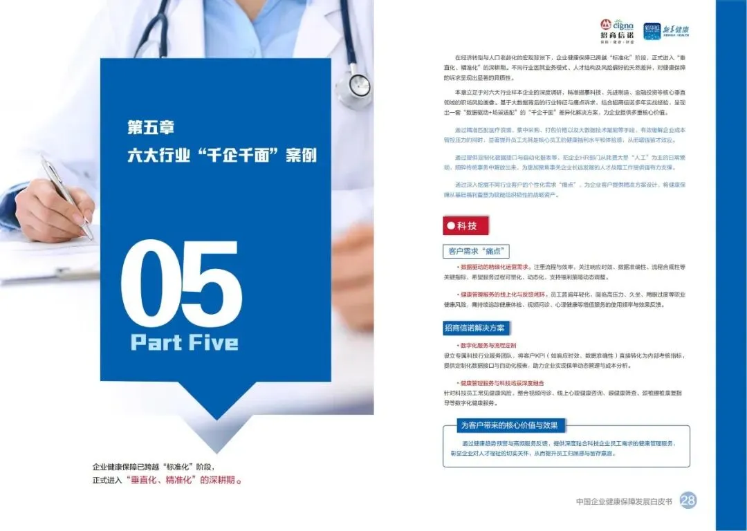 不同行业因业务模式、人才结构、职场风险的差异,对健康保障的诉求呈现显著异质性,白皮书聚焦科技、大消费、文化教育(国际学校)、先进制造、金融投资、律所咨询六大行业,打造“数据驱动+场景适配”的定制化解决方案,标志着企业健康保障正式告别“标准化”,进入“垂直化、精准化”深耕期。