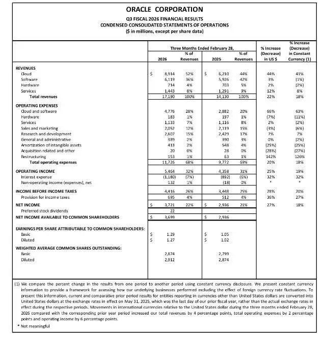 ? 甲骨文2026财年Q3财报(截至2026.2.28)