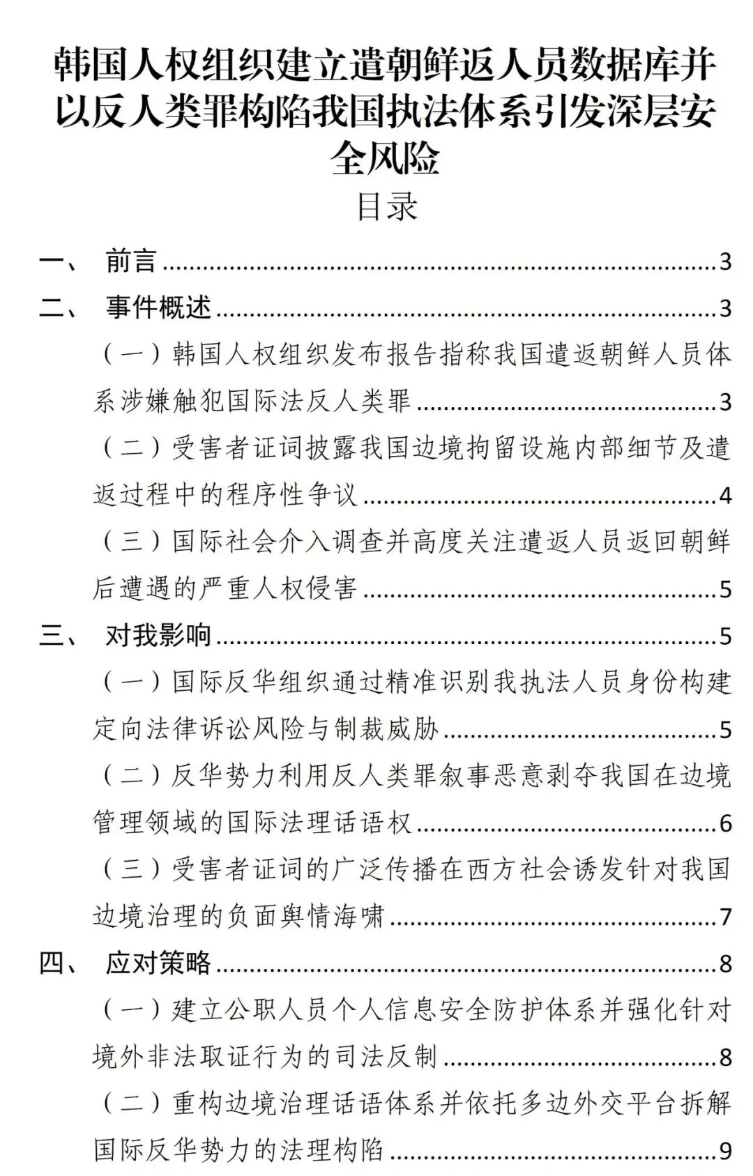 韩国人权组织建立遣朝鲜返人员数据库并以反人类罪构陷我国执法体系引发深层安全风险