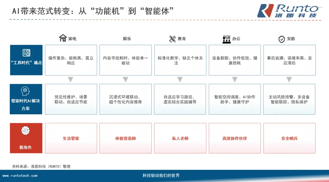 2025年,“具身智能”被首次写入政府工作报告,标志着其从实验室迈向产业化的关键一步。洛图科技(RUNTO)认为,家庭消费是具身智能即将爆发的核心场景,而情感与陪伴将是其创造的核心价值。