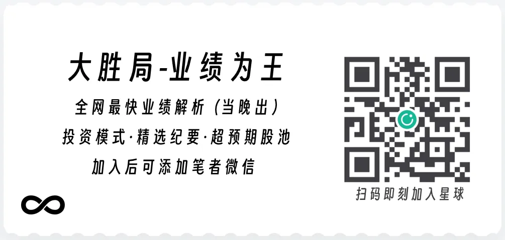 本文提到的详细数据、最新纪要研报,及市场专业复盘等内容,均同步更新到知识星球"大胜局·业绩为王"。有需要的读者,可扫描文末海报二维码加入后阅读。