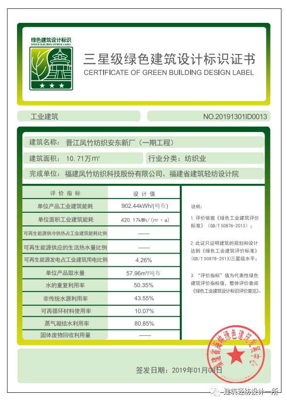 此次获奖是对设计一所在印染工厂领域工艺设计和建筑设计的高度肯定,该项目系福建省首个也是全国纺织行业首个获得工业建筑三星级绿色建筑设计标识的项目。我司将以此为契机,进一步扩展印染行业的设计技术创新和实践,为客户提供更加高效、优质的行业设计服务,助推印染行业节能低碳目标的实施。