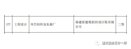 近日,福建省勘察设计协会公布2023年度福建省优秀工程勘察设计成果认定名单,福建省建筑轻纺设计院有限公司设计一所“凤竹纺织安东新厂”项目获得工程设计类别优秀成果认定,是纺织行业唯一入选的项目。