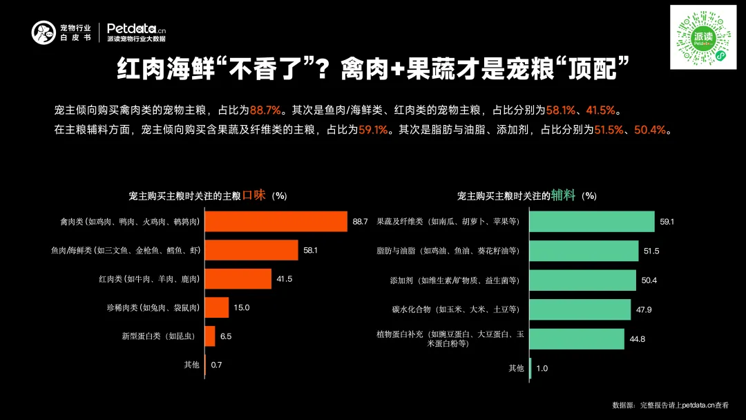 5、鲜肉 > 蛋白 > 含肉量,宠主配料关注度“三强”出炉。