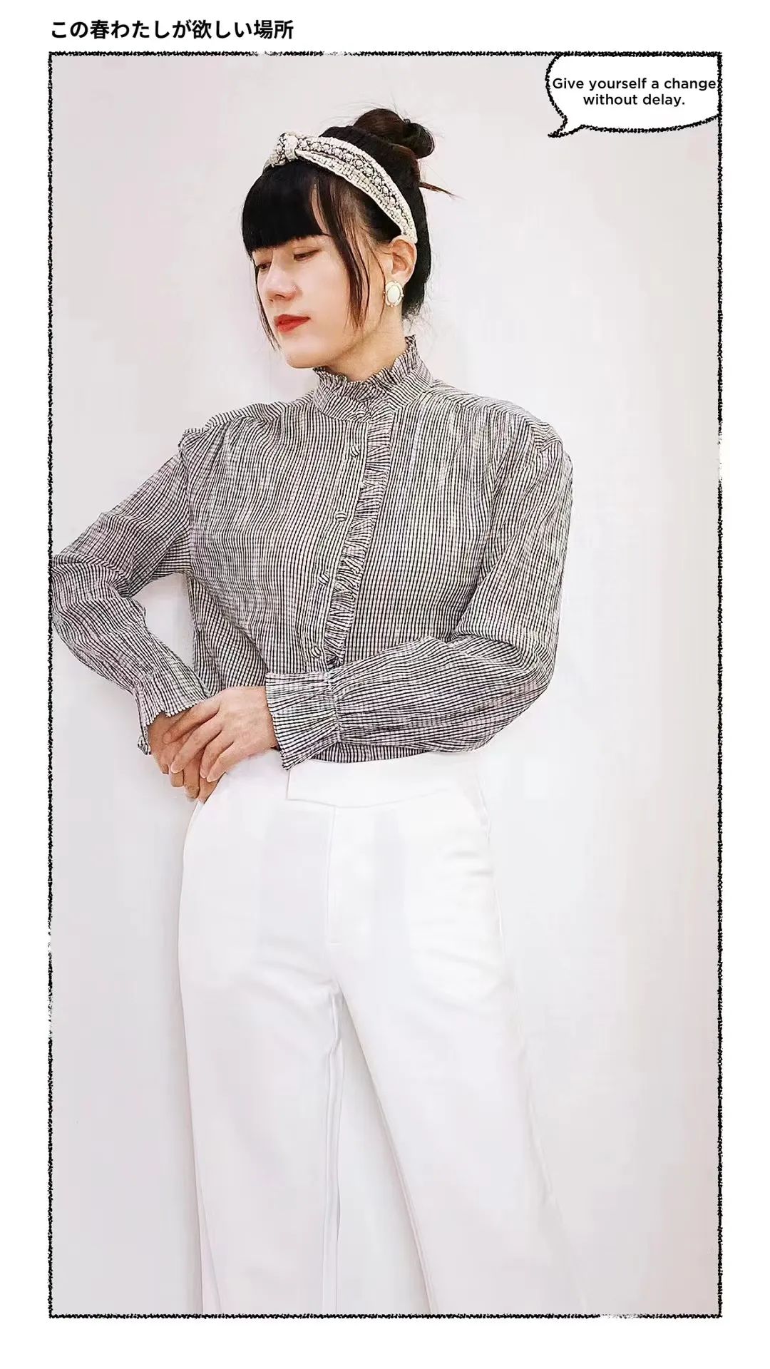 经典的黑白格纹路很细密,适合更多的人群。拉夫领荷叶边的领口和门襟,将正面托举的华贵美丽,让文艺范中迸发出优雅味道。