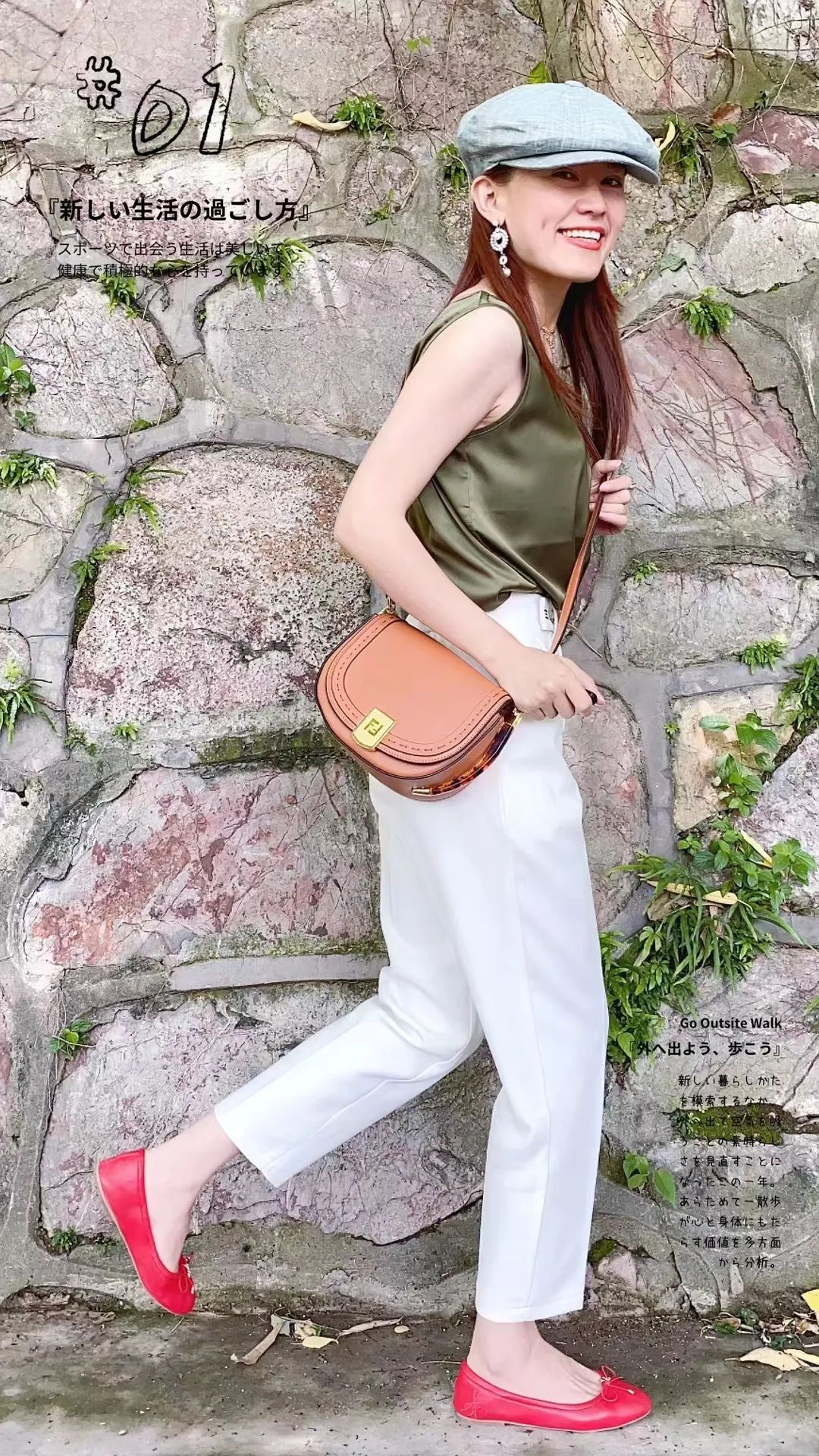 脚上红色芭蕾平底鞋,斜挎包背在肩上,每一刻都是追求简约而不简单的生活态度,轻松又自然的展现出个性和魅力。这个夏日里,所有的微笑,都显得如此清新。