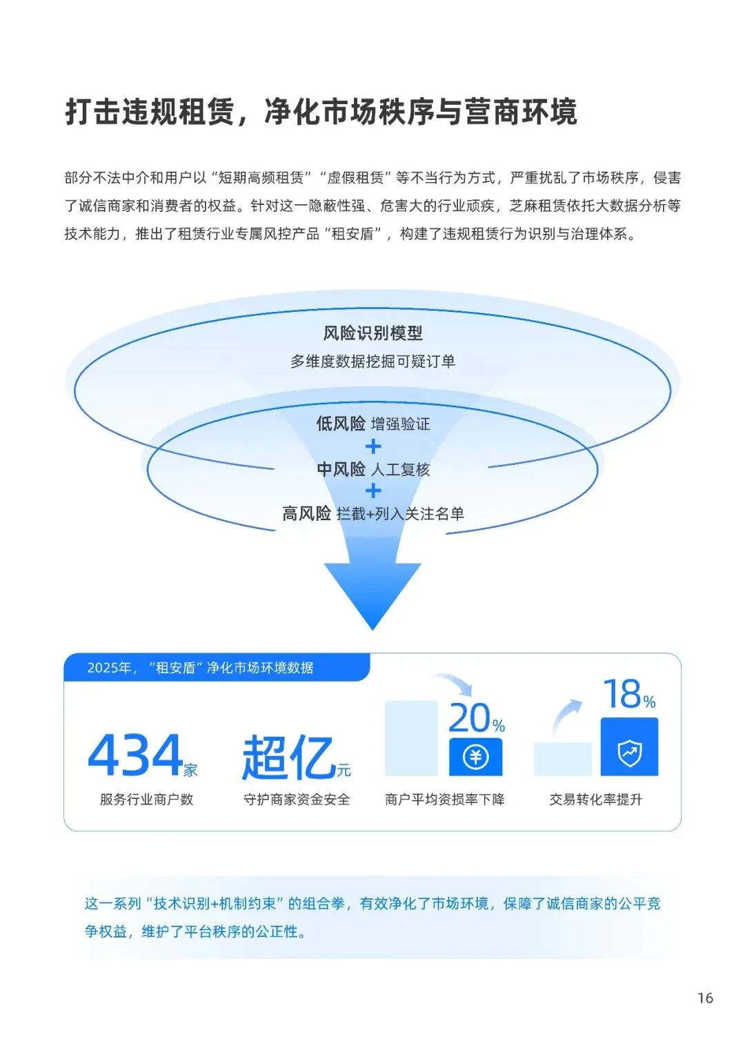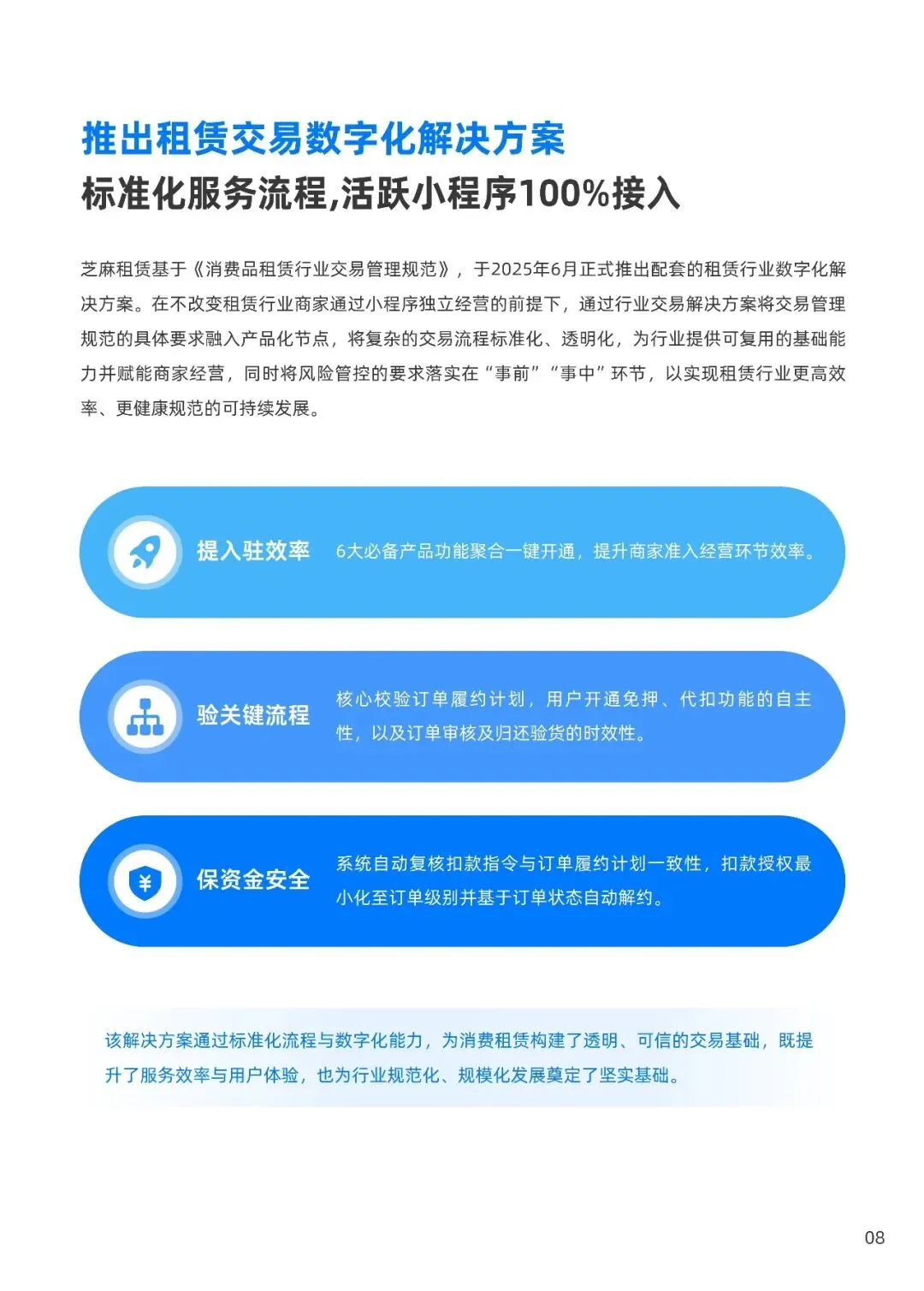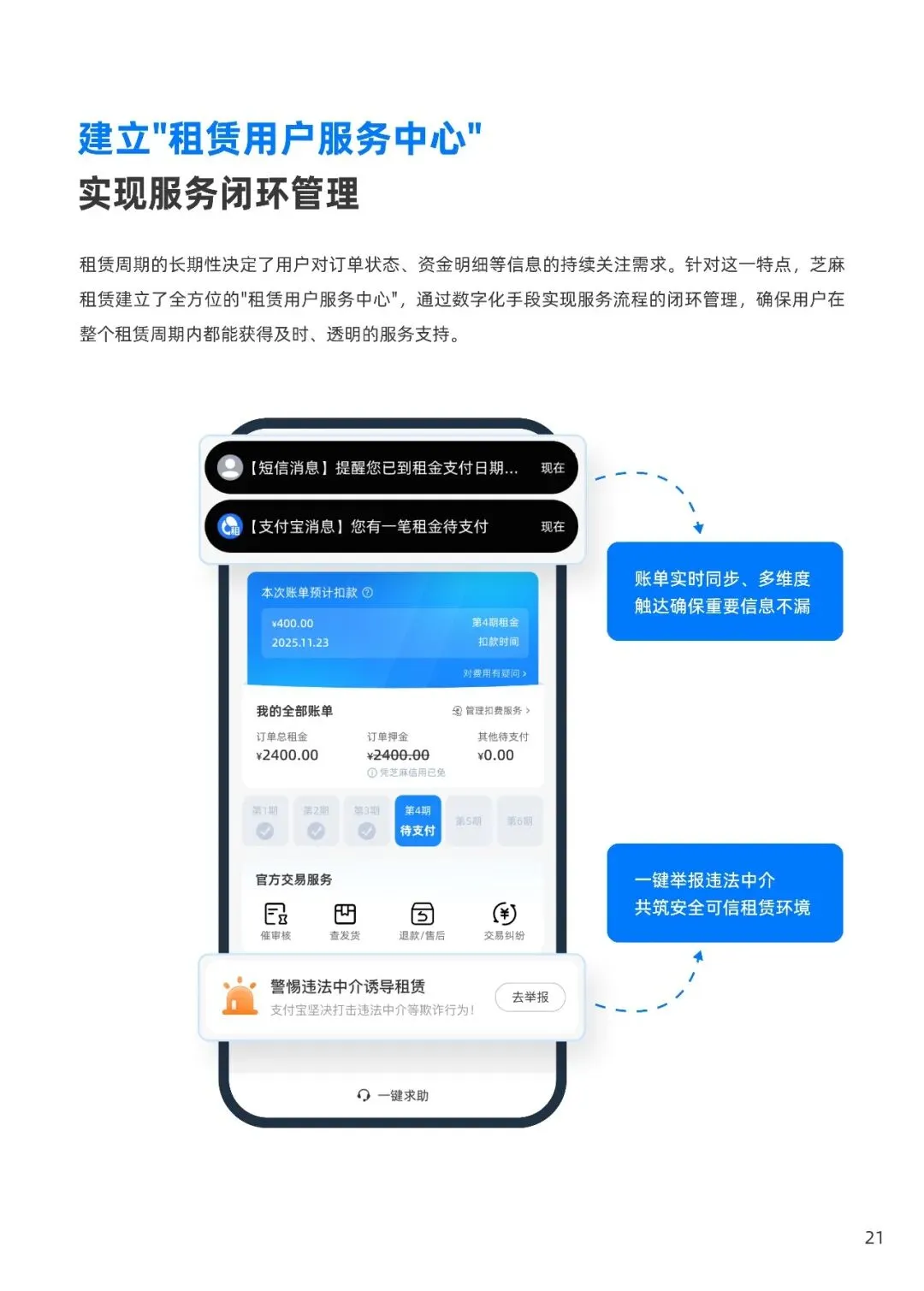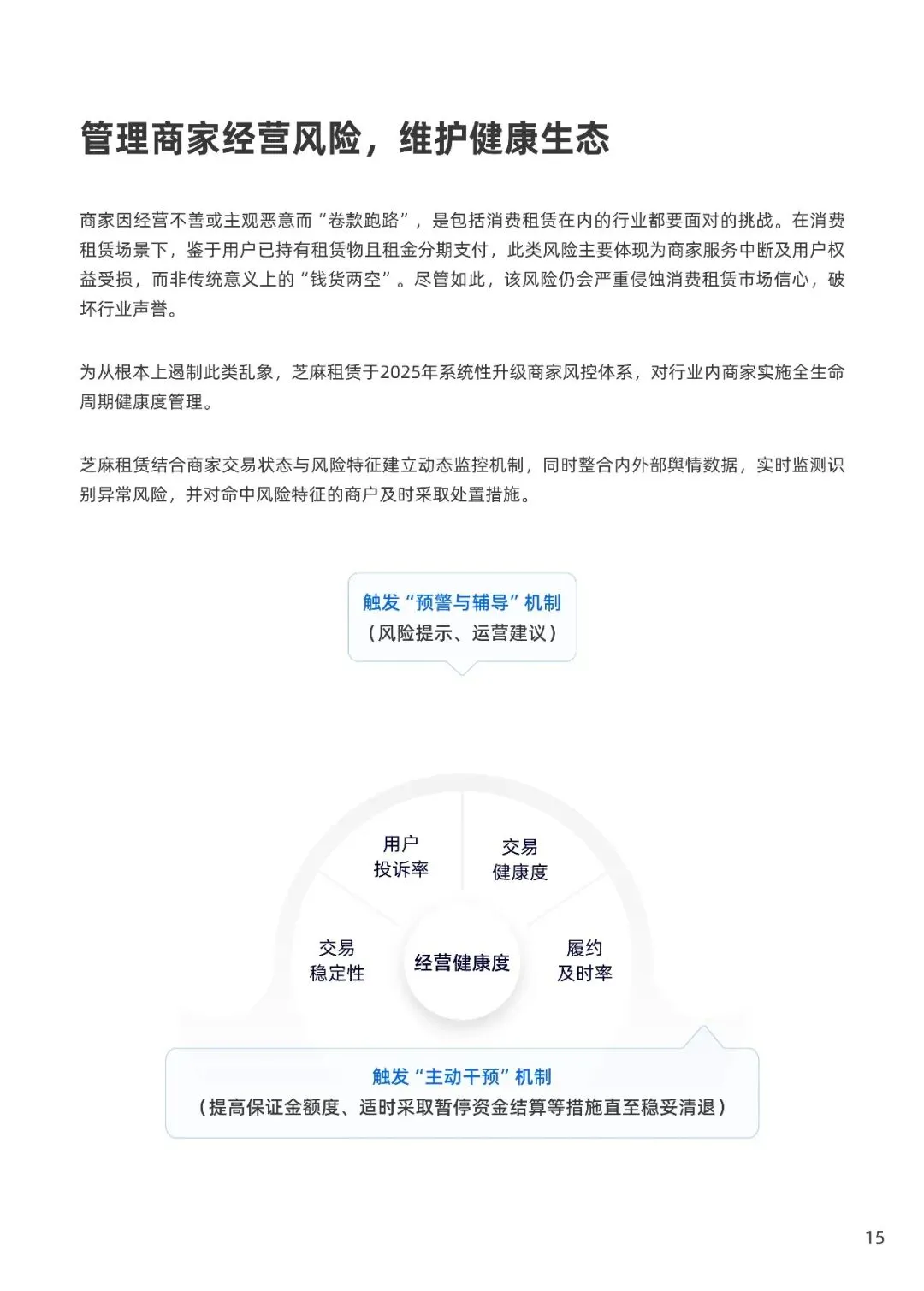 报告以芝麻租赁为例,阐述了消费租赁行业的健康发展路径。报告指出,在政策引导和市场需求的双重驱动下,消费租赁行业快速发展,但也面临信息不透明、服务不规范等挑战。芝麻租赁通过制定行业标准、发布白皮书、构建数字化解决方案等举措,推动行业规范化发展。
