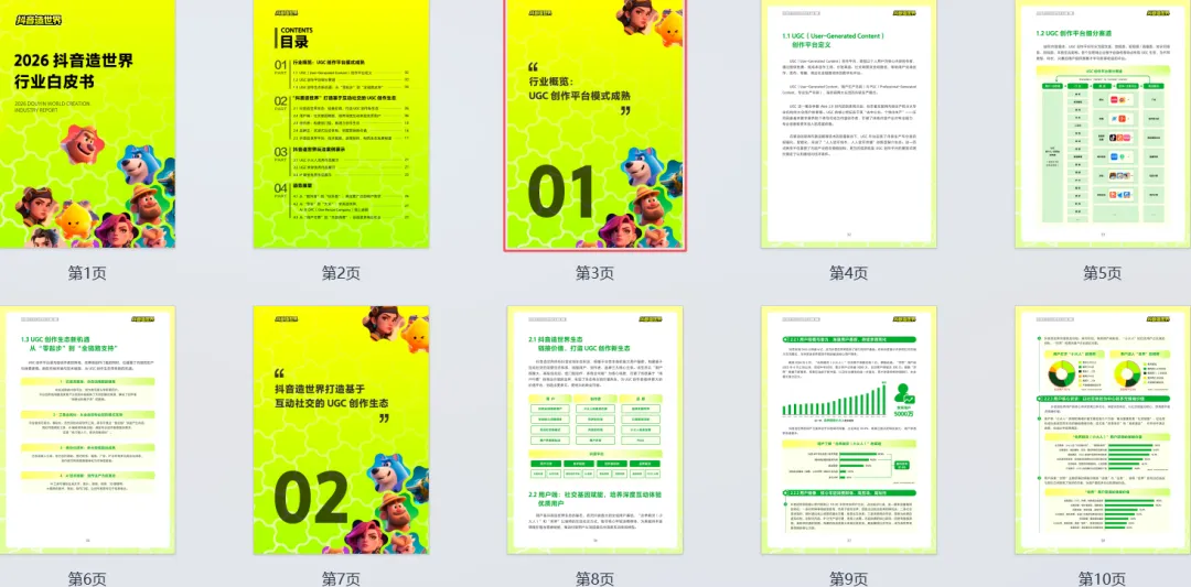 这份白皮书不仅是抖音造世界的发展总结,更是整个 UGC 行业的发展指南 —— 当技术持续赋能、生态持续完善,创作不再是专业者的专属,全民创作的浪潮已然来袭。而抖音造世界所构建的,不仅是一个虚拟世界创作平台,更是一个连接现实与虚拟、连接人与人、连接创造与消费的新型数字生活空间,在这个空间里,每个人都能成为创意的表达者,这正是 UGC 生态的终极价值所在。