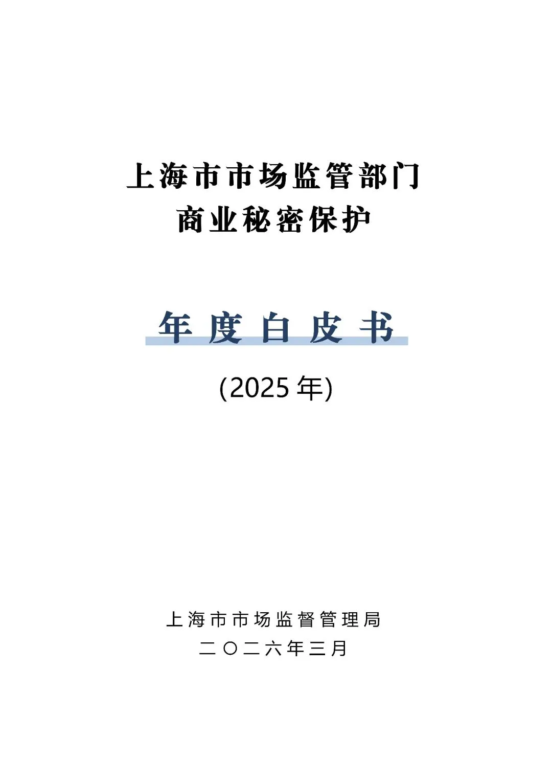 日前,上海发布2025年度商业秘密保护典型案例和《上海市市场监管部门商业秘密保护年度白皮书(2025年)》,向全社会传递商业秘密依法严格保护的鲜明信号,引导企业强化风险防范、诚信合规经营。